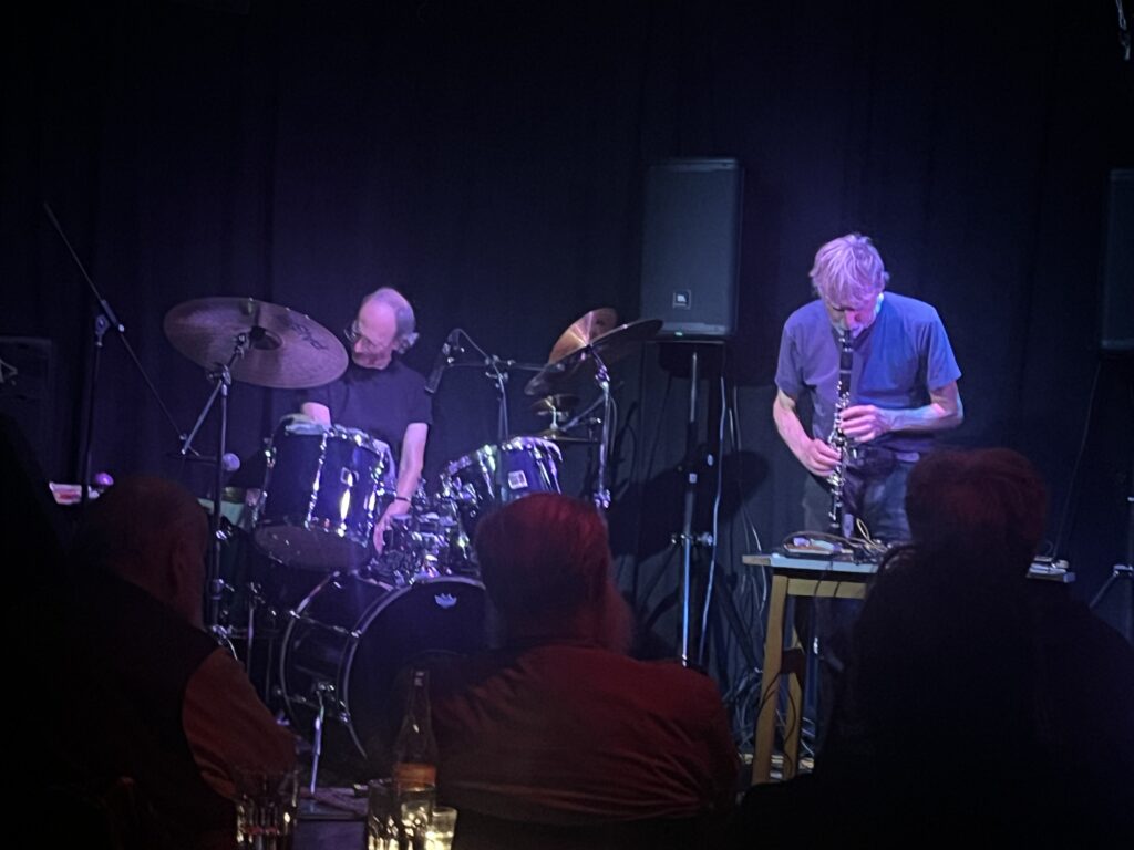 Zwei lebende Legenden des britischen Art-Rock lud der Verein liccht ins Celeste: den Perkussionisten Chris Cutler und den Multiinstrumentalisten Tim Hodgkinson, sohin die Hälfte der famosen Band Henry Cow – Lindsay Cooper hat ja schon vor Jahren zu leben aufgehört, während Fred Frith übrigens am selben Tag wie seine Exkollegen im Salzburger Jazzit konzertiert.
