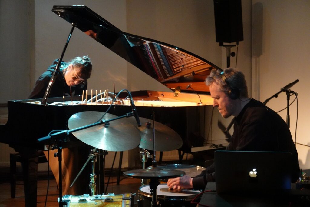 Wie schon Anfang März bei den Tiroler artacts in St. Johann fasziniert auch im Wiener echoraum die Verschränkung von interagierenden analogen und digitalen Kunstfertigkeiten von Ingrid Schmoliner und Martin Brandlmayr im Duo Revolve. Den Revolver tragen sie hüfthoch, zu zwei kommunizierenden Gefäßen gesellt sich ein drittes als zusätzliche Dimension. Bei noch besserem, glasklarem Sound (Oliver Stotz) beginnt die Reise der beiden durch die Galaxis des Klangs gemächlich, bevor sie zunehmend Fahrt aufnimmt, wenn Schmoliner in Kaskaden schwelgt und Brandlmayr dazu ein Becken auf dem Knie zu zerbrechen beabsichtigt. Klavier, Perkussion und Elektronik bündeln beide in unerhörter Intensität und Lust am Abenteuer. Ein Erlebnis für die ganze Familie der Sinnesorgane.
